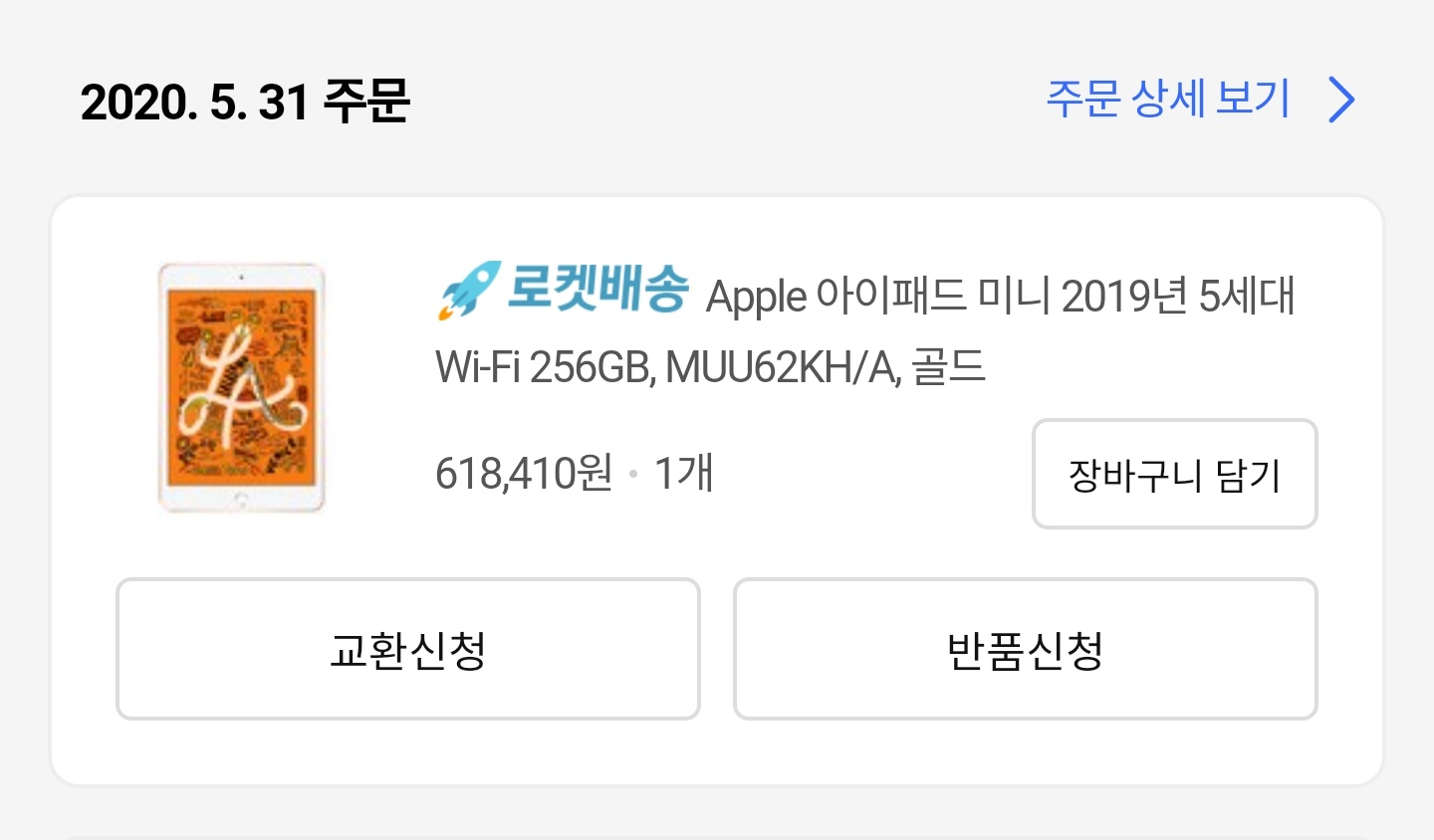 구입처가 여기저기 많지만 내가 쿠팡을 선택한 이유는 빠른 배송과 쿠팡에서 직접 애플스토어에 매입해서 파는 방식이기 때문에 믿을 수 있었고 또 다른 곳 보다 할인율이 높아서 선택하게 되었다. 결과적으로 로켓 배송이라 하루 만에 왔고 또 패드에 하자도 없이 지금까지 아주 잘 사용 중이다.